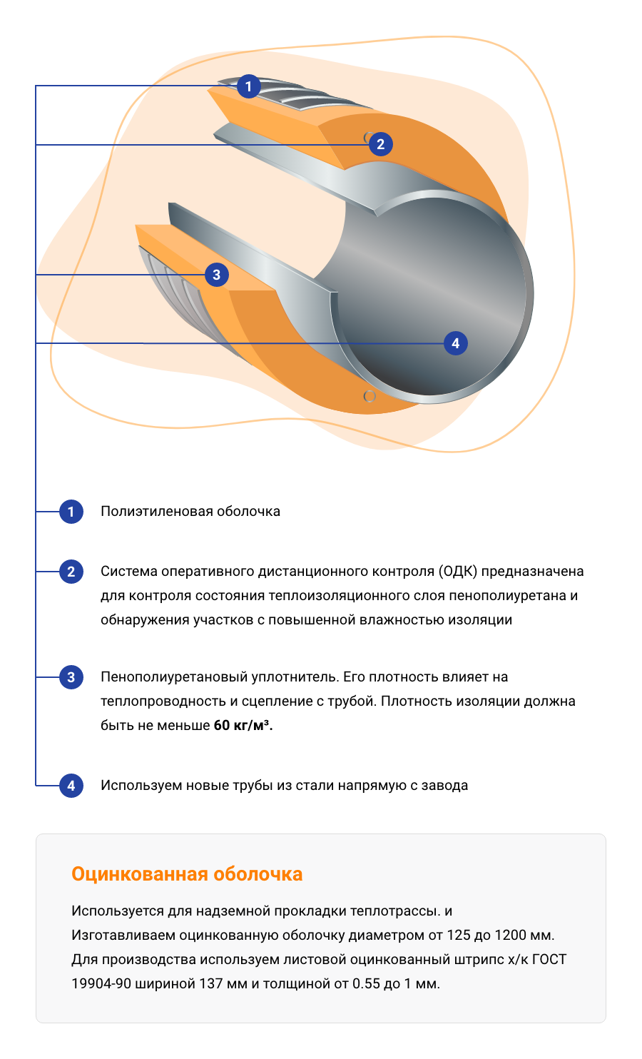 Все трубы оболочки обязательно обрабатываются коронным разрядом для обеспечения высокой адгезии пенополиуретана к поверхности оболочки.